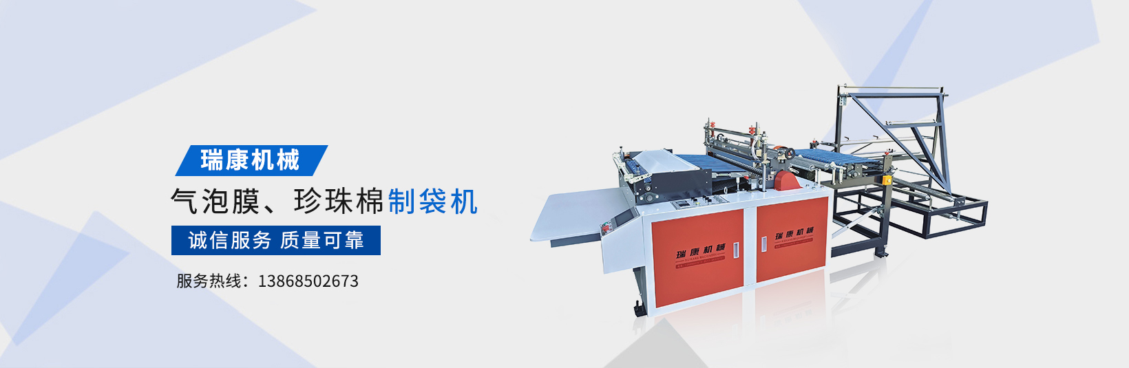 溫州瑞康機械有限公司(www_zdtwp_com.cr14v1.cn)主要生產氣泡膜機,快遞袋制袋機,包裝機,制袋機等設備。瑞康機械是國內生產塑料軟包裝系列機械設備的專業廠家之一。產品質量可靠、誠信服務,深受用戶好評,市場占有率節節攀升。
